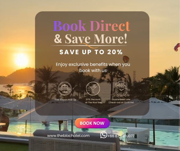 The Bloc hotel is on Taweewong Road, which is located right on Patong beach front, where you can enjoy sun, sea, and water sports. It is only a blink of an eye to Bangla walking street, which is widely known as one of Phuket most stunning nightlife entertainment area. Other nearby attractions in the area are including Jungcylon shopping mall, Patong local market, seafoods and internationa restaurants, etc.
